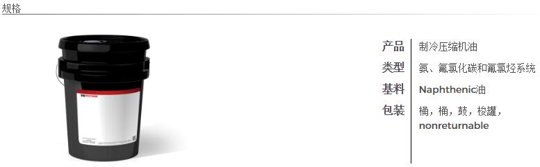 制冷压缩机油基于极低的蜡环烷油,用于需要不受阻油的地方。 推荐用于使用氨,CFC(含氯氟烃)和HCFC(氢氯氟烃)制冷剂如R-11,R-12,R-13,R-113,R-114,R-115,R-22的制冷压缩机 ,R-123,R-141b,R-142b,R-717,R-500,R-501和R-502。不推荐使用HFC(氢氟碳)制冷剂,如HFC-134a(R- 134a)。 Whitmore制冷压缩机油推荐用于蒸发器温度低至-35°F或-37°C的系统。