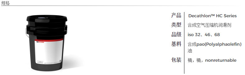 上一篇:Decathlon™合成空气压缩机润滑油 PG系列