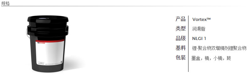 Vortex™是一种经久耐用的粘性润滑脂,专门用于润滑格栅和齿轮型机械联轴器的长期润滑。 这种高效润滑脂可用于任何尺寸的联轴器,无论在任何速度下,还是在水和蒸汽的存在下。
